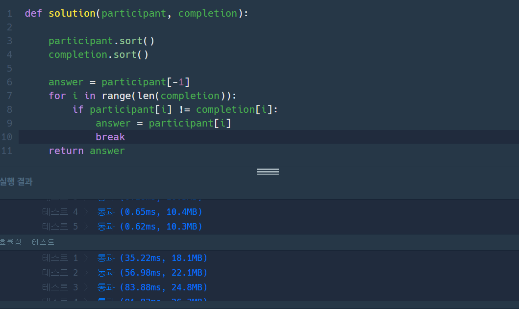 break를 거는 것과 효율성에는 상관이 있는것 같은데 왜 정확성까지 에러가 나지..?